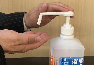 来院されましたら、手のアルコール消毒・感染予防をお願いします。