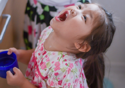 治療前にうがい薬によるお口の消毒を行っています。薬剤にアレルギーの有る方は事前にお申し出下さい。